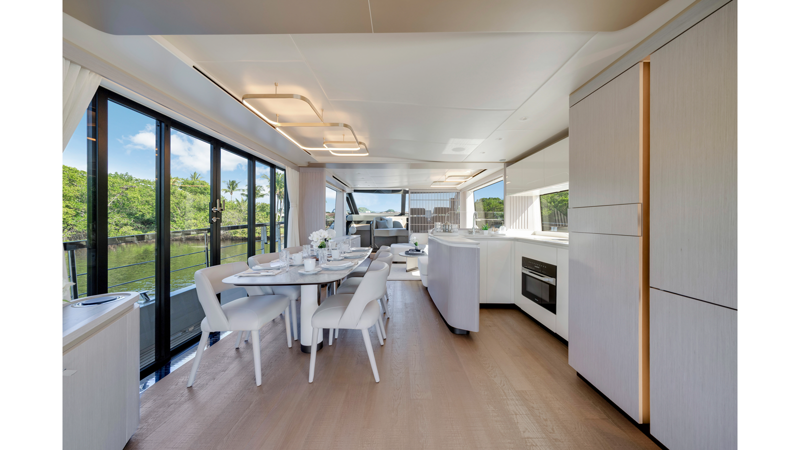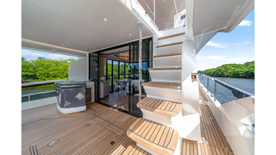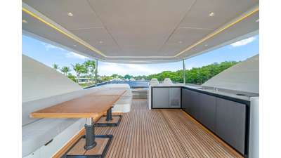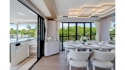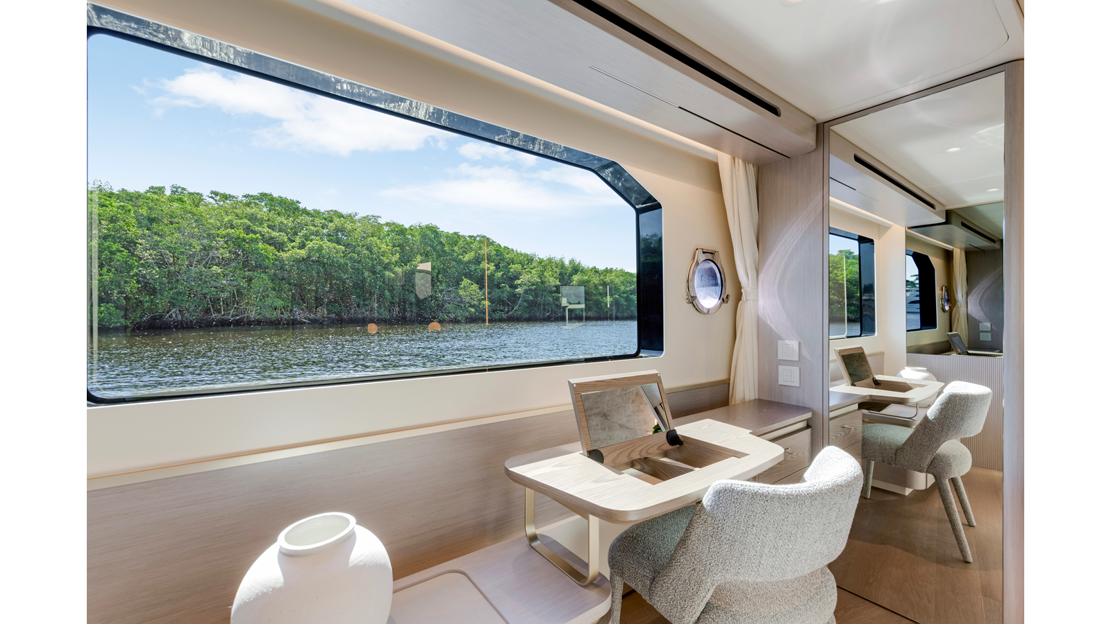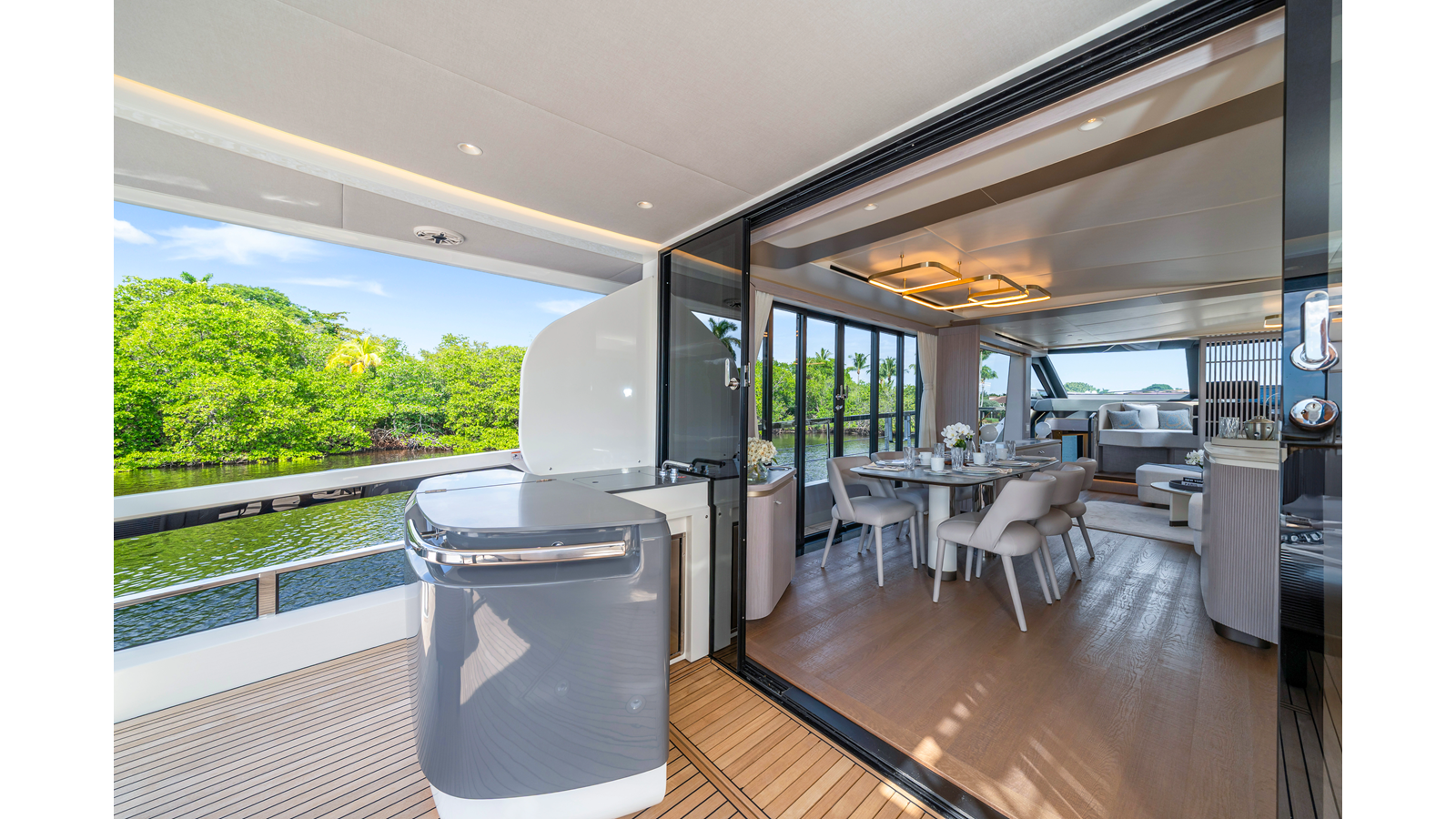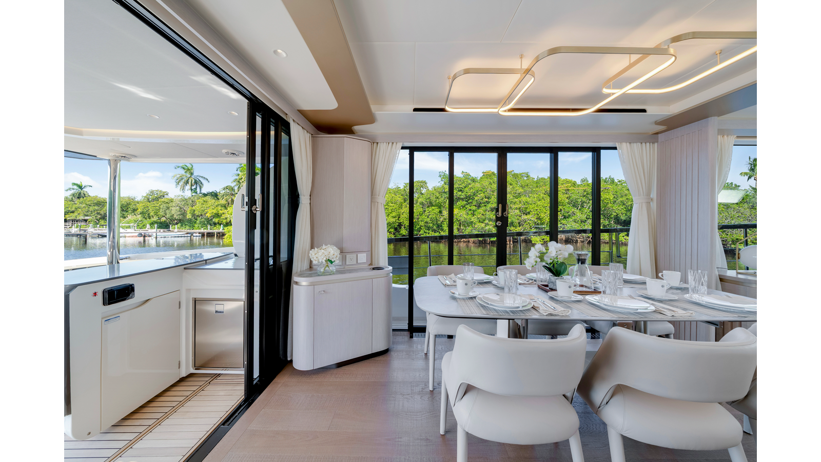 - Flybridge teak table with chairs (3) and covers instead of STD ceramic table with chairs (3)