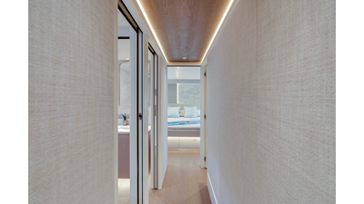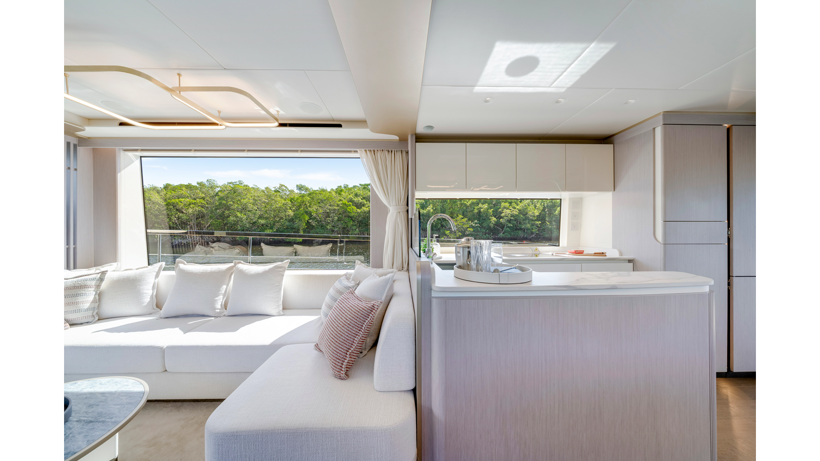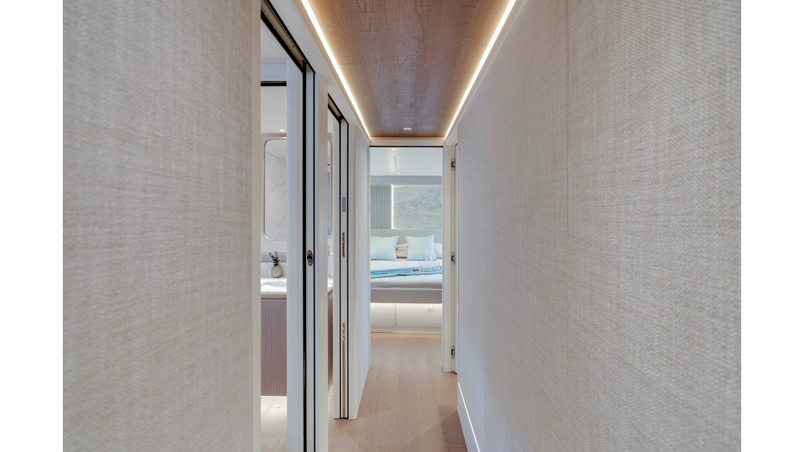 - Reed-finish bulkhead for division of sofa area from the wheelhouse in main deck