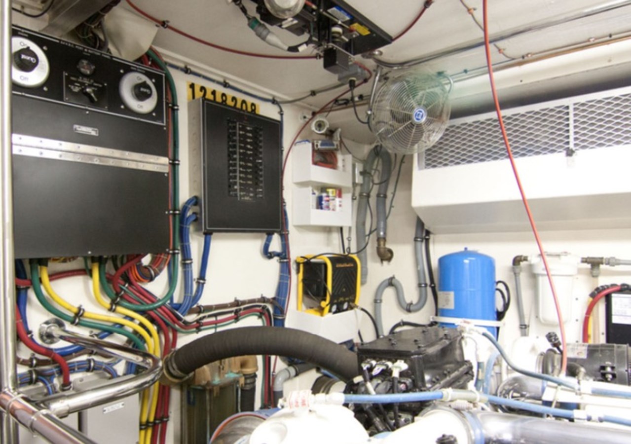 The generator room is located between the lower stateroom and is accessed via a hinged door in the floor of the hallway.