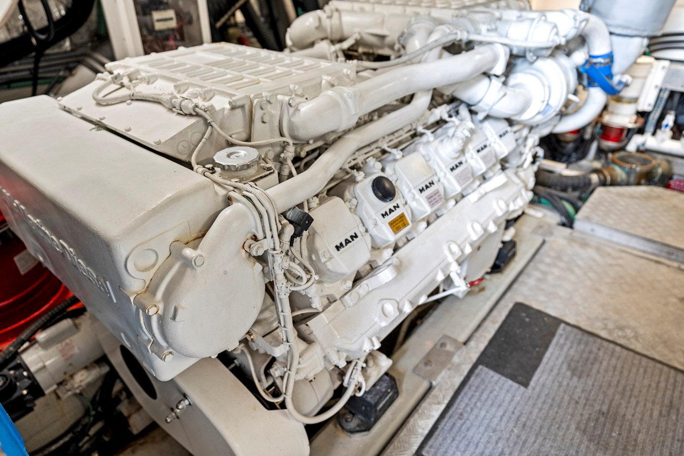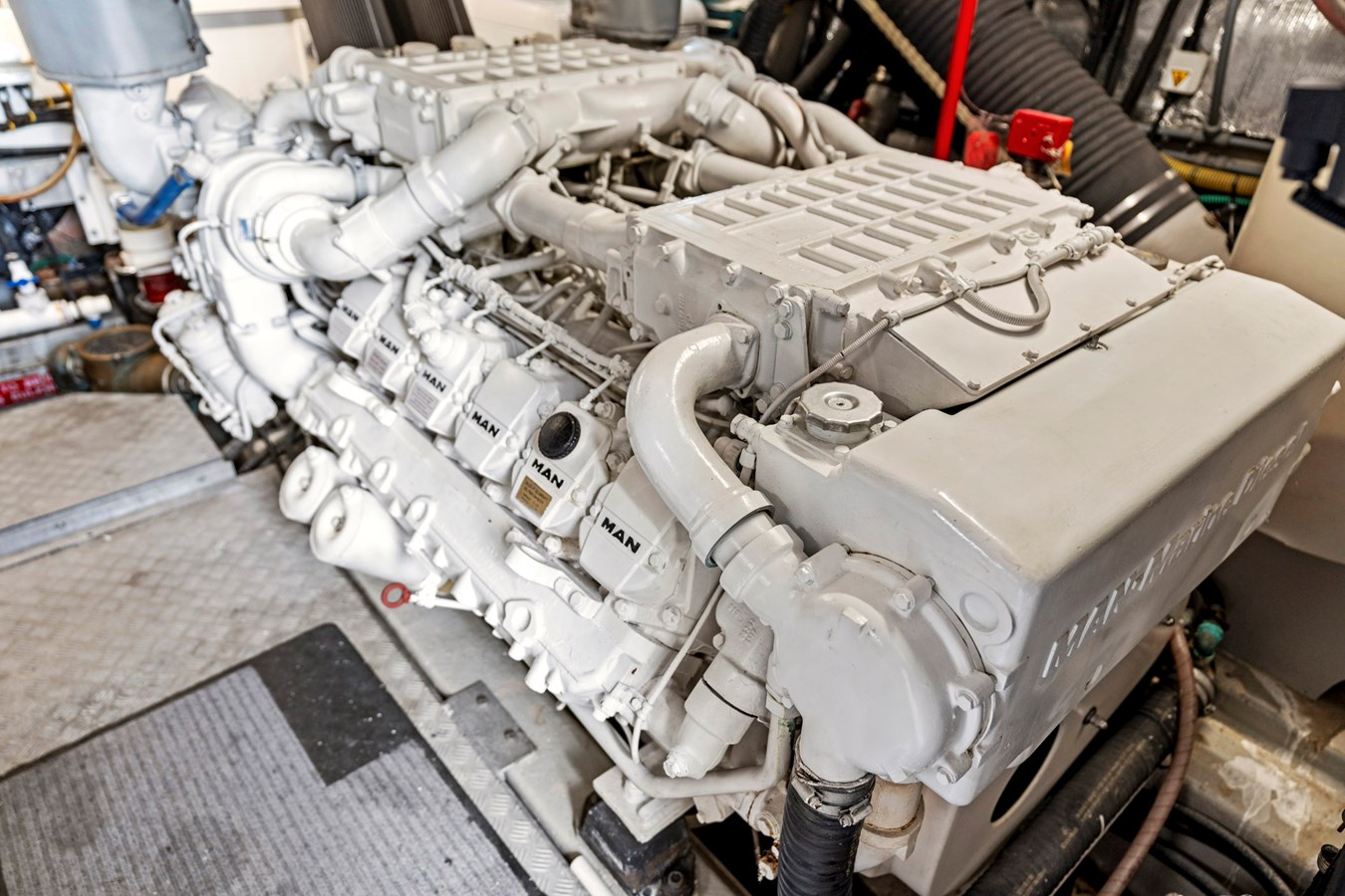 - Twin MAN V12 1550 HP Diesel Engines
