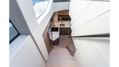 - Wood flooring in lower lobby and step to the master cabin and the forward lobby up to the forward cabin door