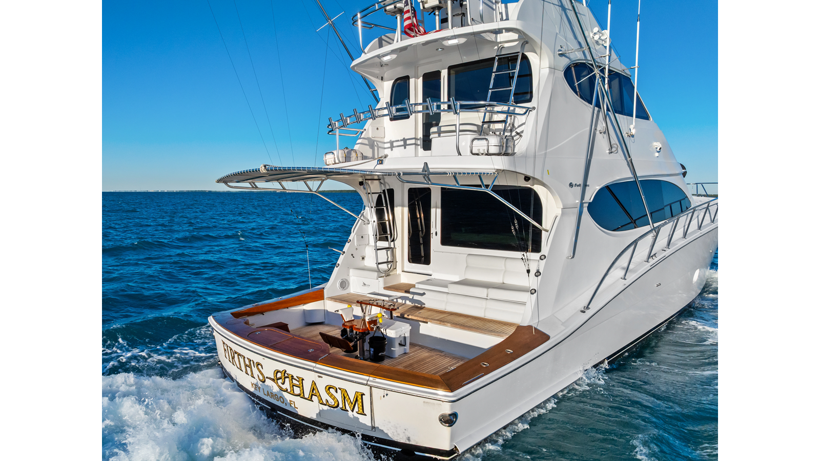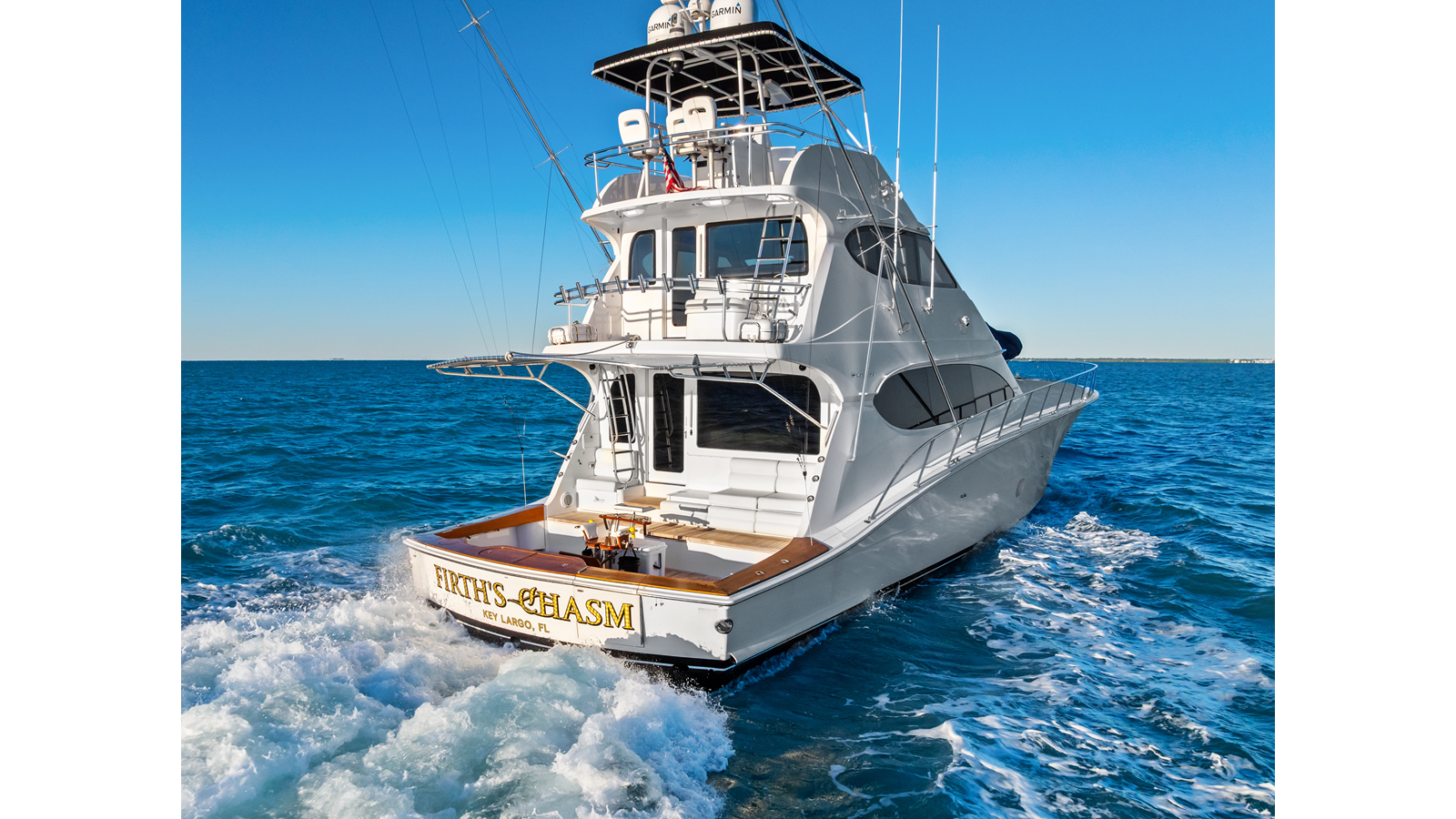 FIRTH'S CHASM is a fully refitted 77 Convertible with Enclosed Bridge, and a Sky Bridge. This proven offshore sportfish combines tournament-level capability with true motor-yacht comfort. Built on Hatteras’ solid fiberglass hull with a 22’ beam, this model is widely respected for its seakeeping, interior volume, and long-range cruising ability.