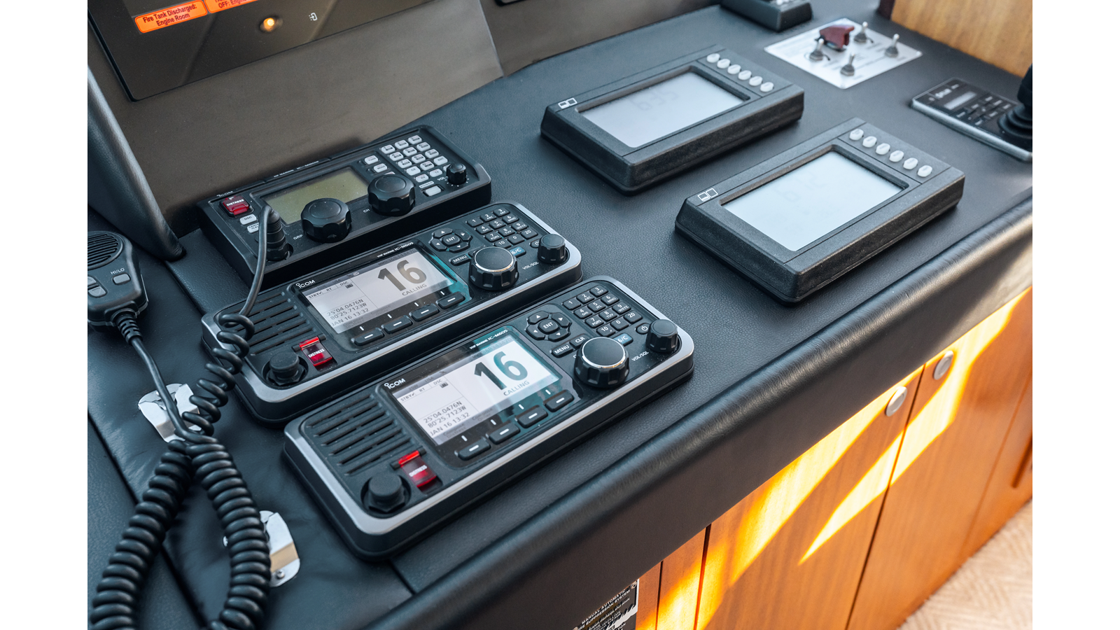 - (3) ICOM VHF radios in WH, (1) on skybridge. (2) ICM 605, (1) IC-M802