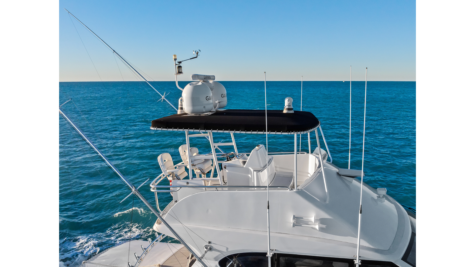 On top the fully equipped sky bridge has a 22’ Garmin, VHF, bow and stern thruster controls ABT Trac zero speed stabilizer controls and a large Garmin gauge display- all of this equipment was new in 2024.