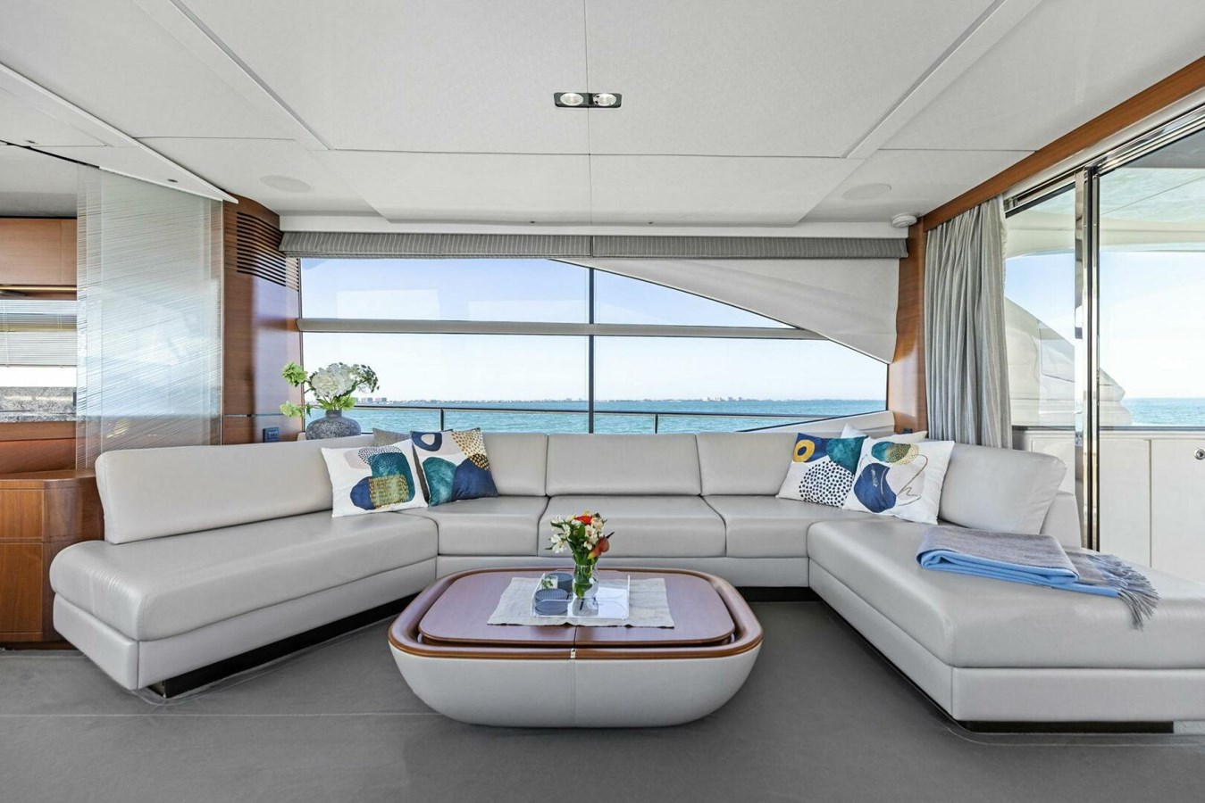 - Upgraded lighting package including additional deck level lights on side decks and transom, flybridge deck and wet bar