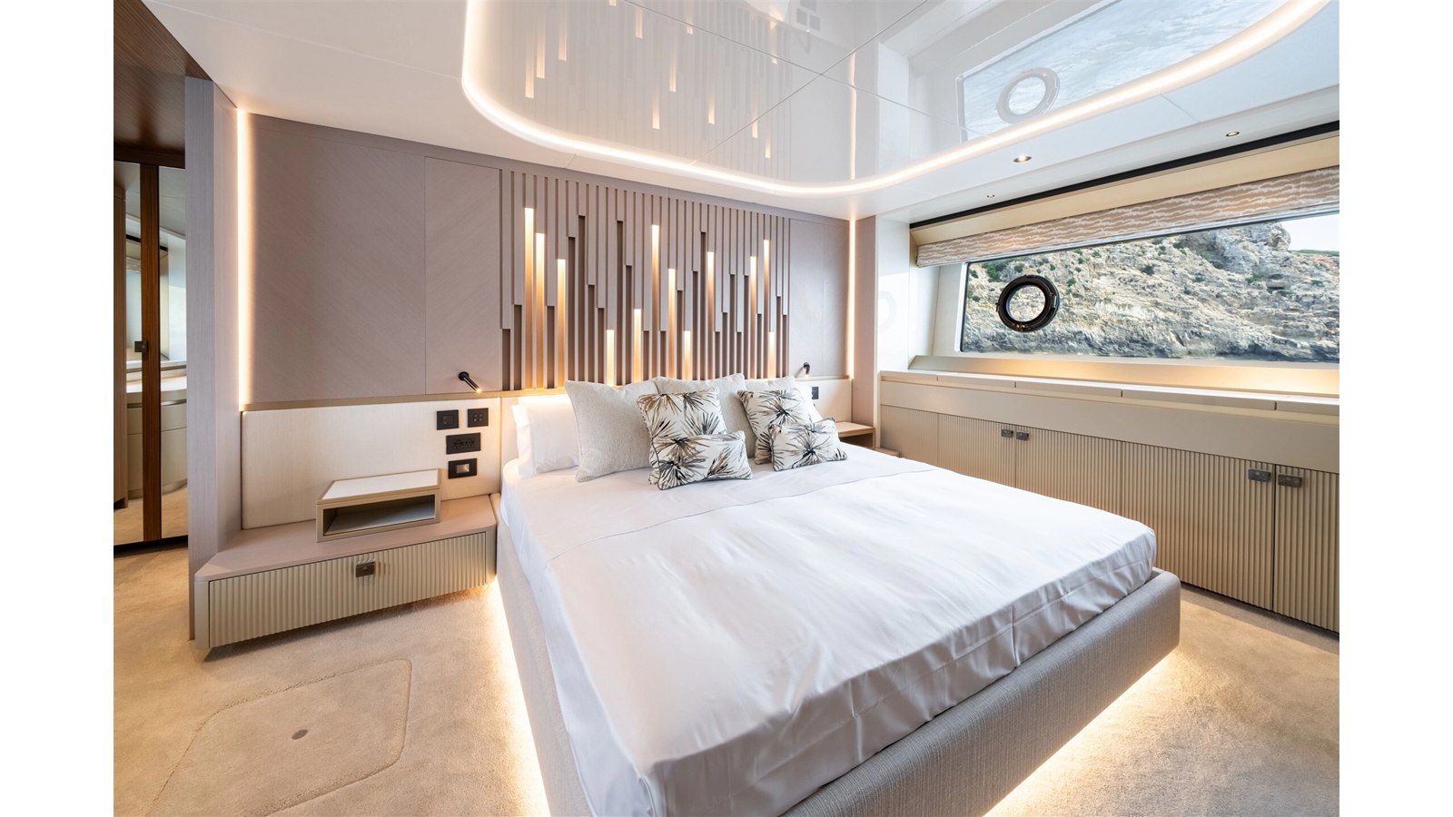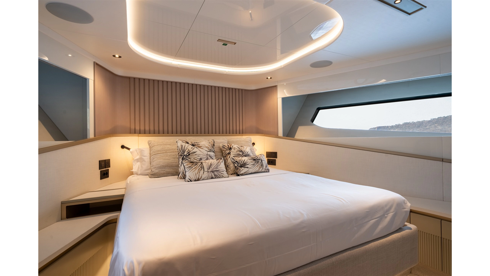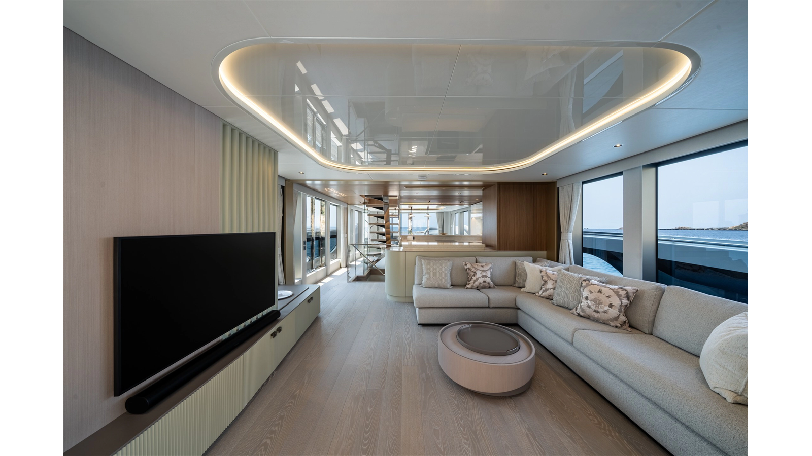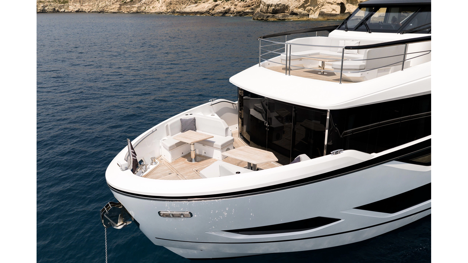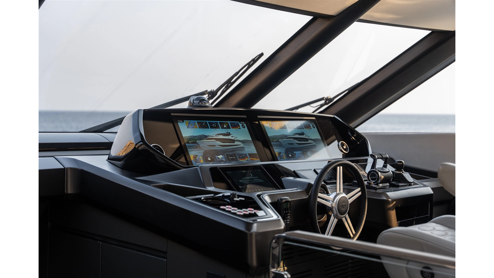 The 82 Ocean Enclosed offers the same expansive layout as the open version, enhanced with additional protection and climate versatility. Designed for year-round cruising in a wide range of conditions, she maintains generous social spaces and a refined interior while increasing comfort and usability in varied climates.