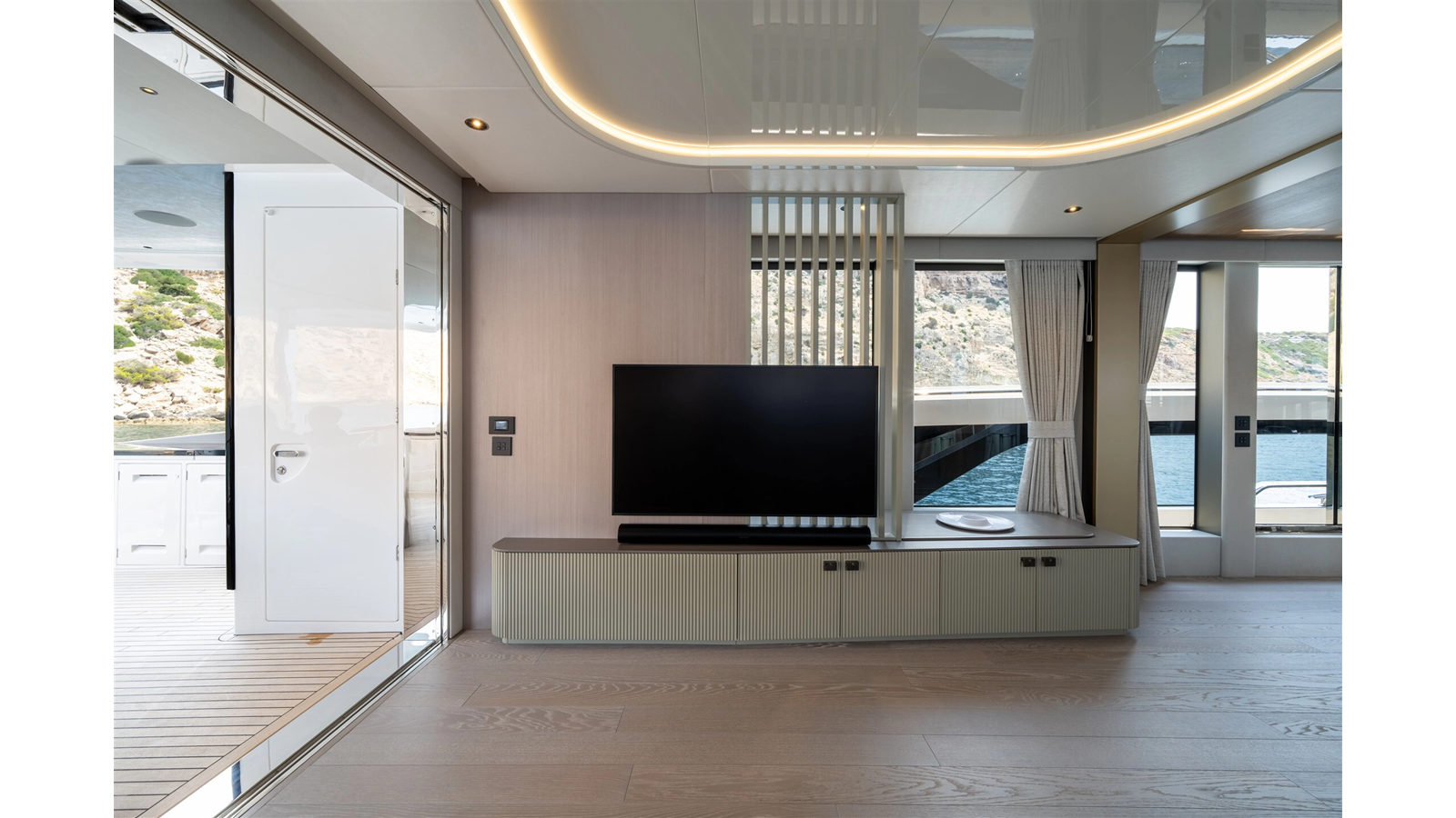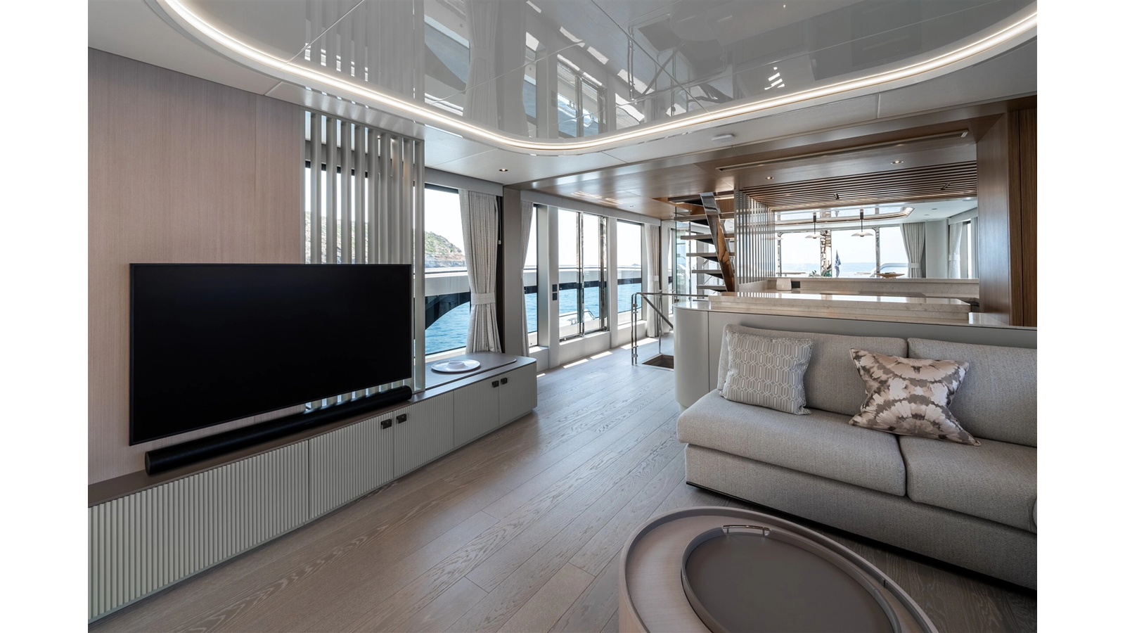 - Main deck saloon TV to be upgraded to 75''. Upper deck saloon TV to be upgraded to 65''.