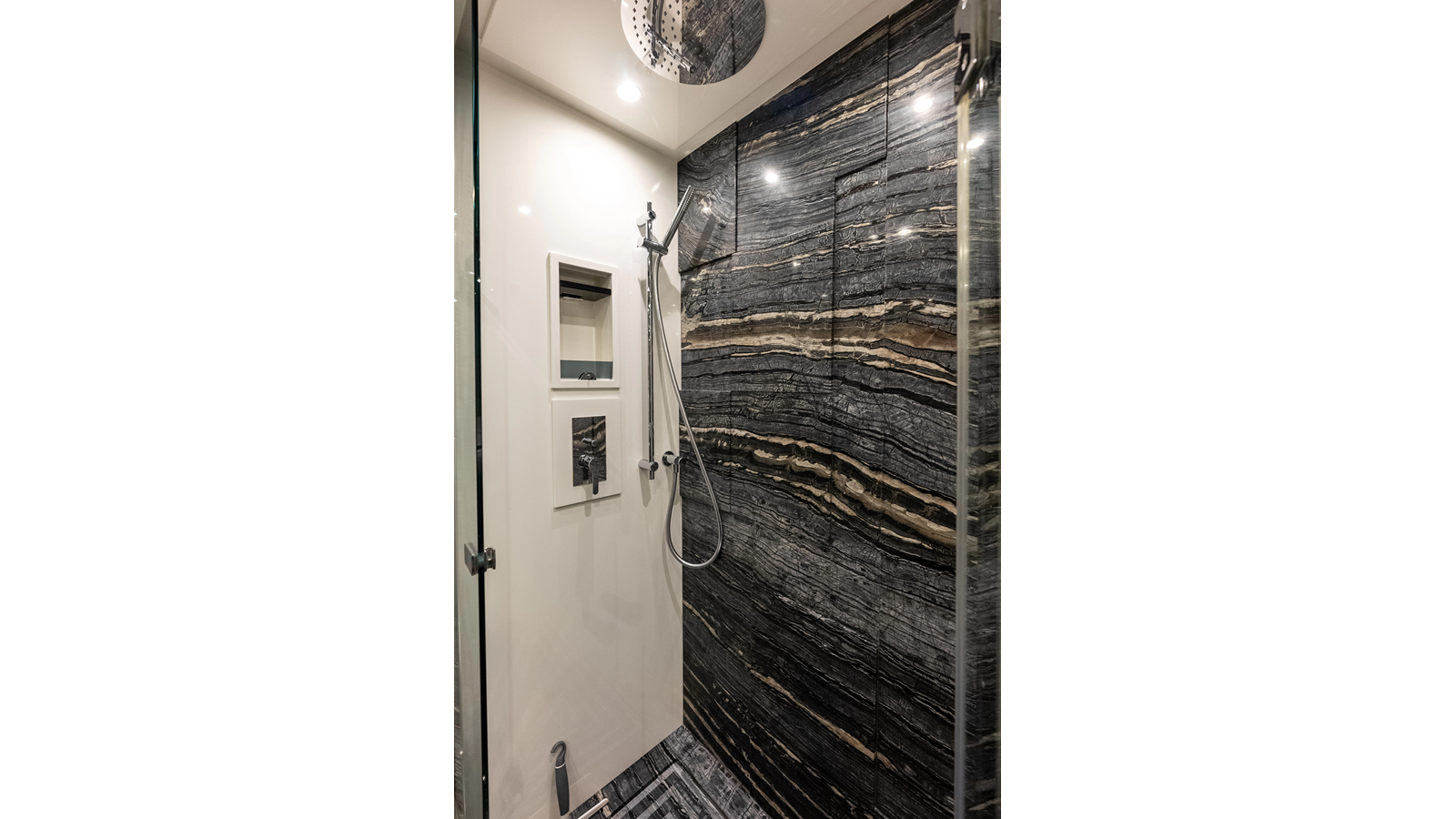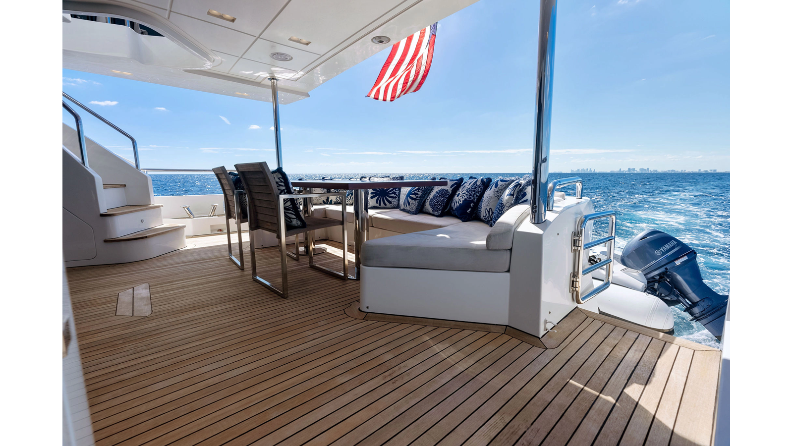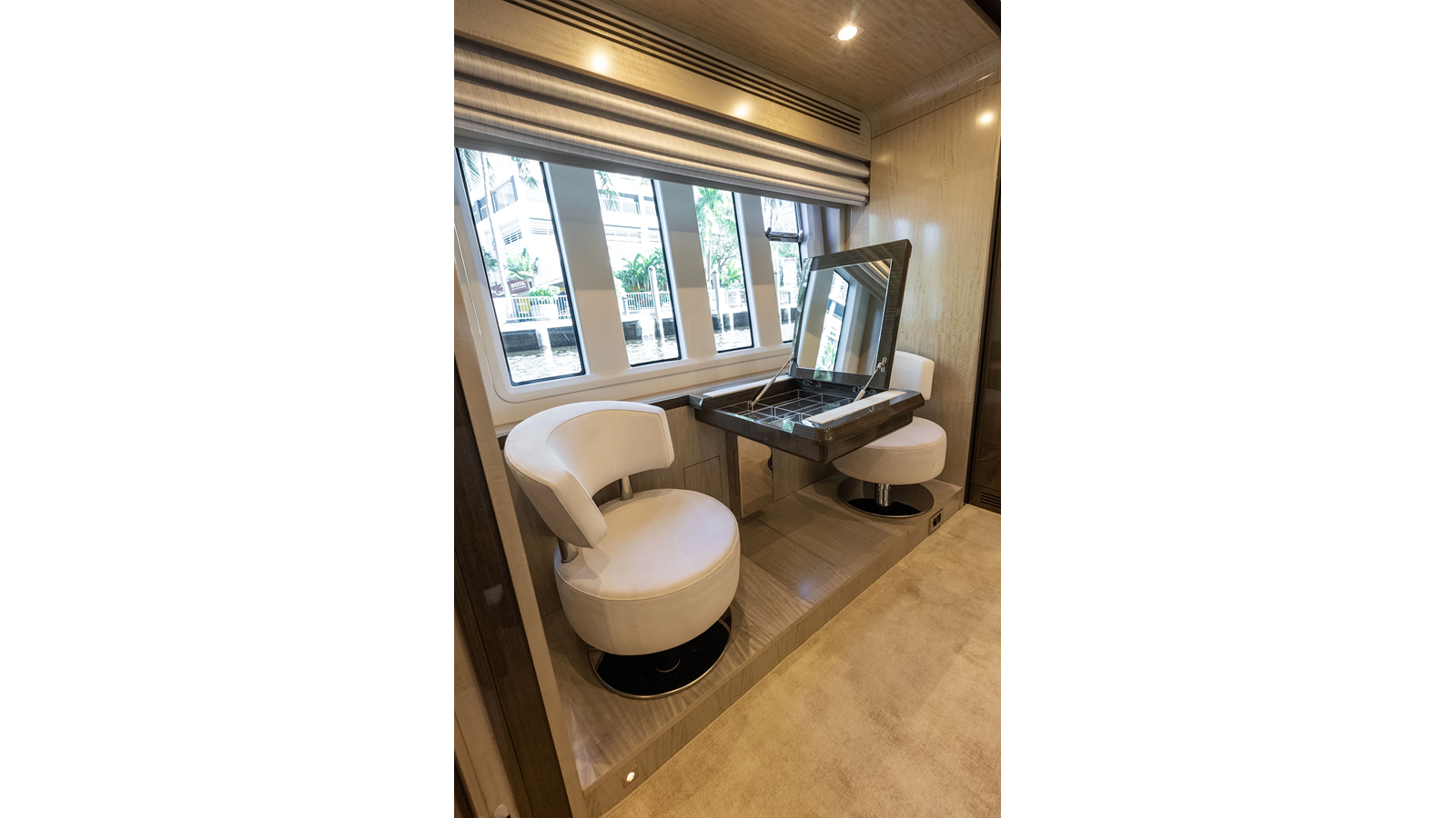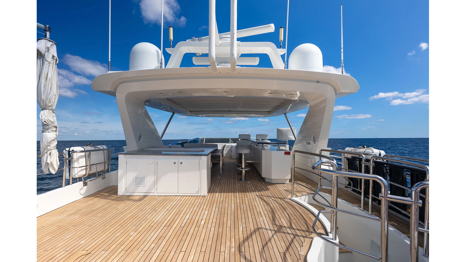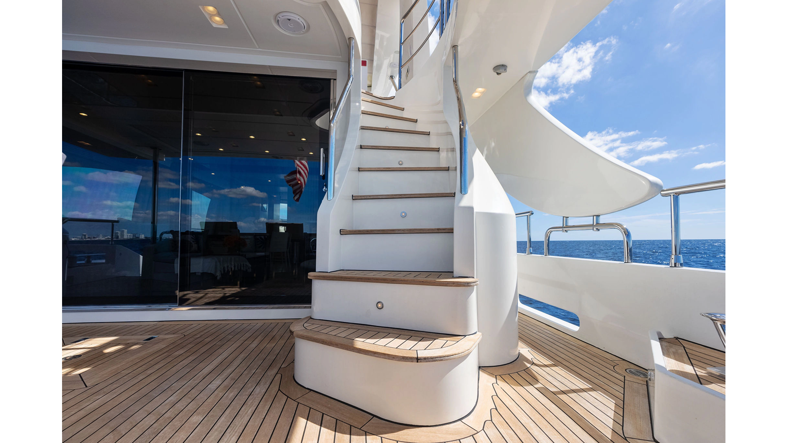 - LED spotlights recessed in the fiberglass on the aft flybridge in lieu of the spotlight.