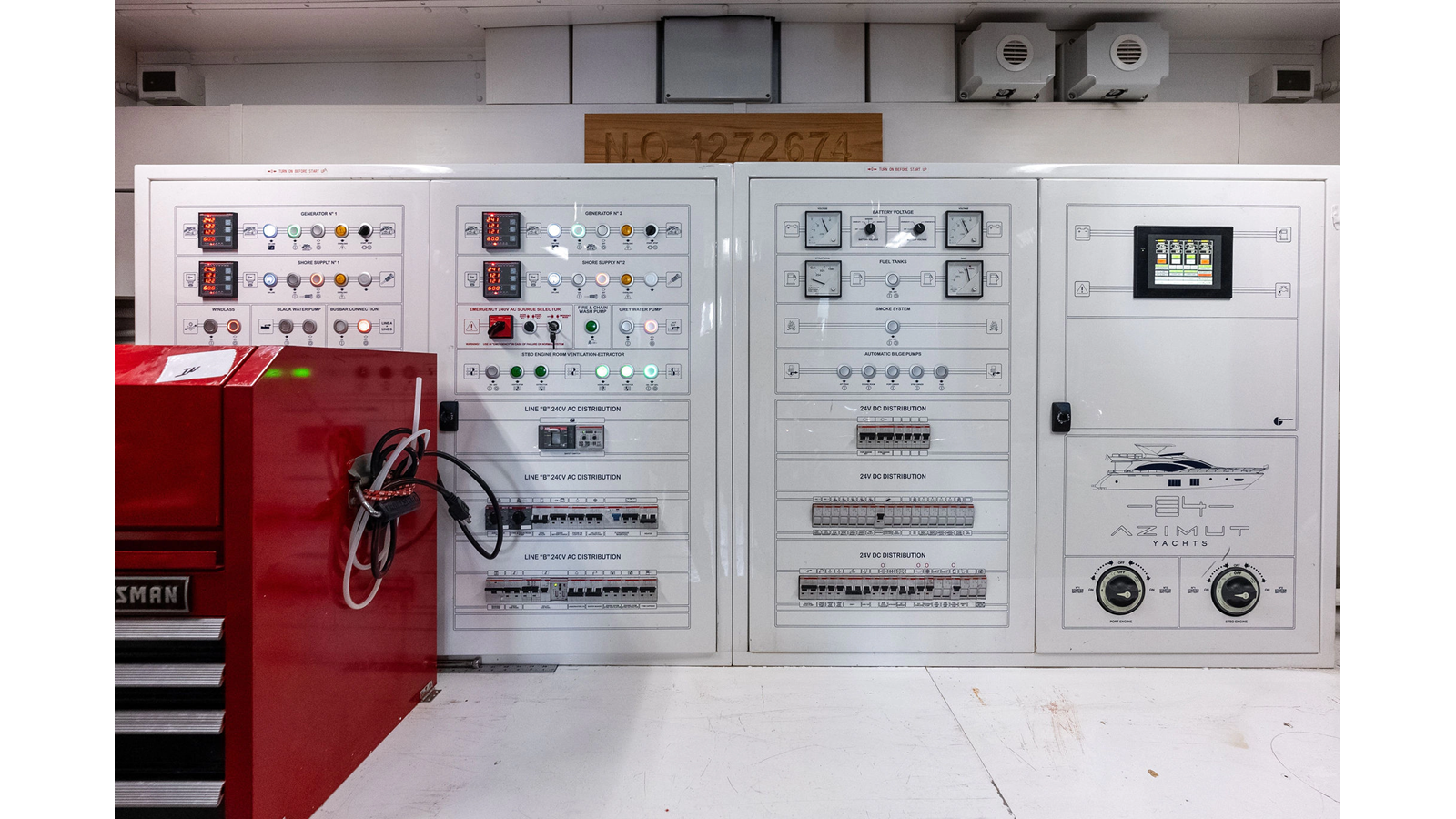 - Watermaker remote control panel installed in the crew mess area