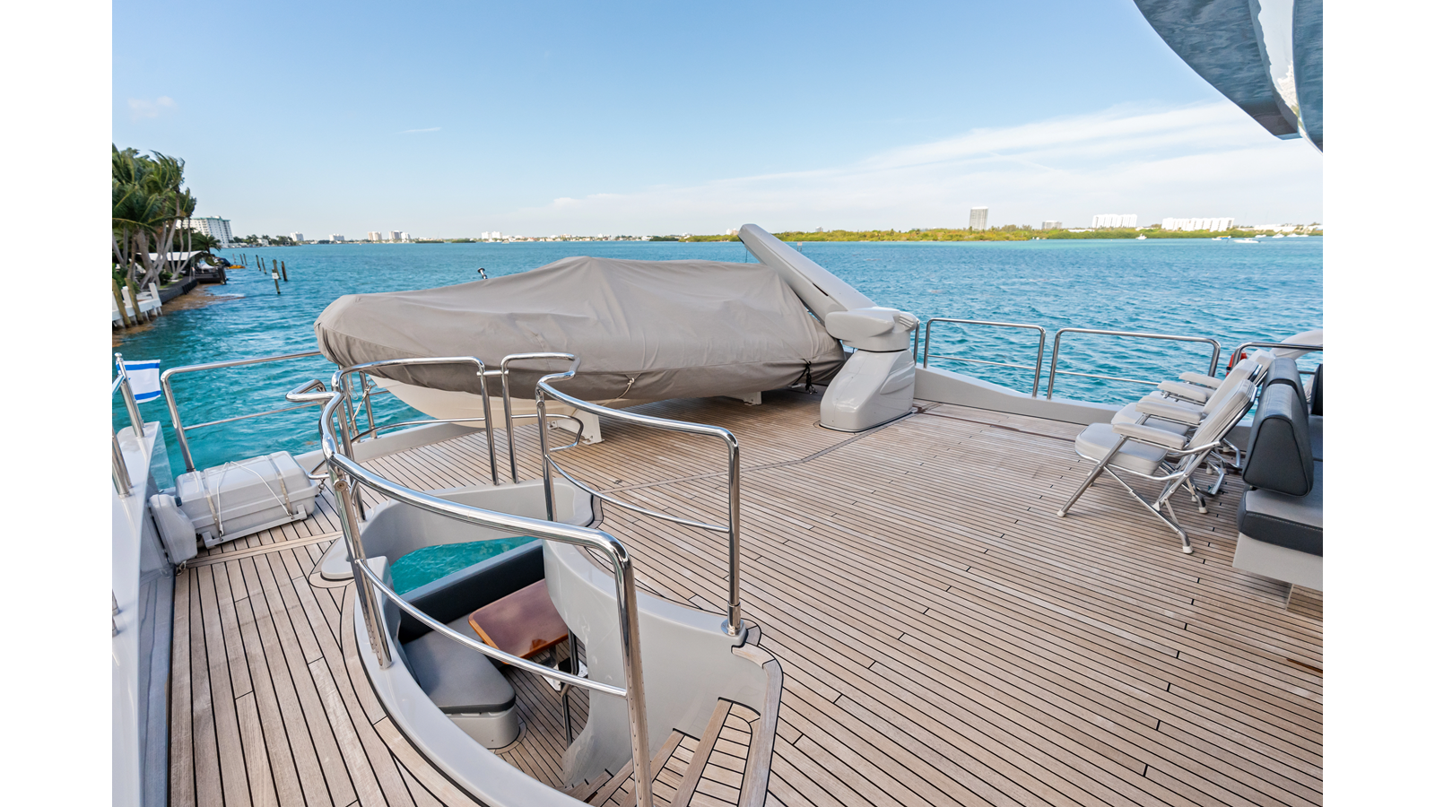 - Steps to the aft deck, three-port, and three starboards, with stainless steel handrails