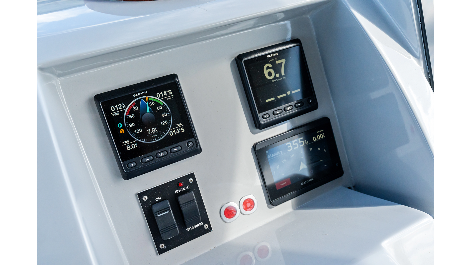 - Caterpillar gauge cluster, port, and starboard