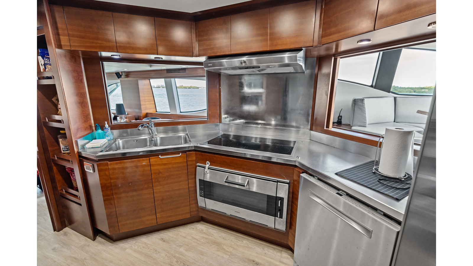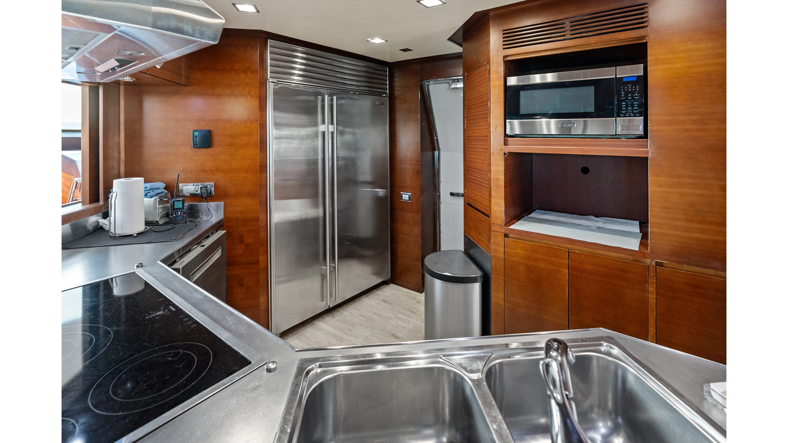 - Sliding stainless steel door to the salon, forward