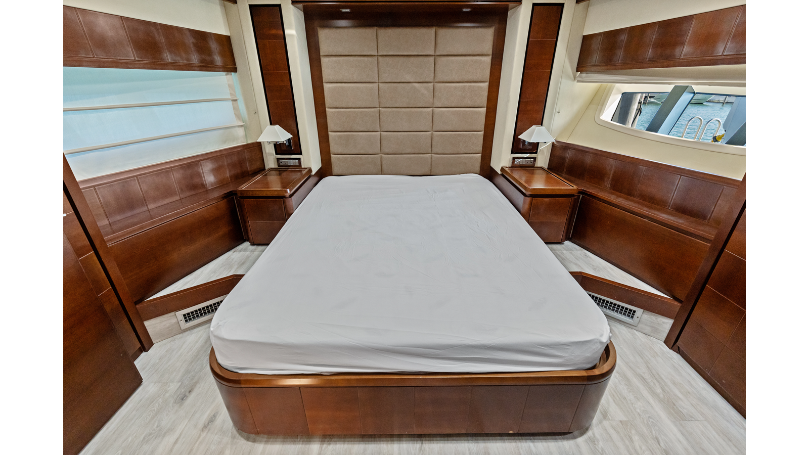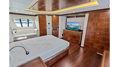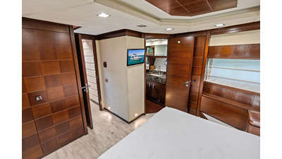 - Entrance via aft deck via sliding doors with drapes