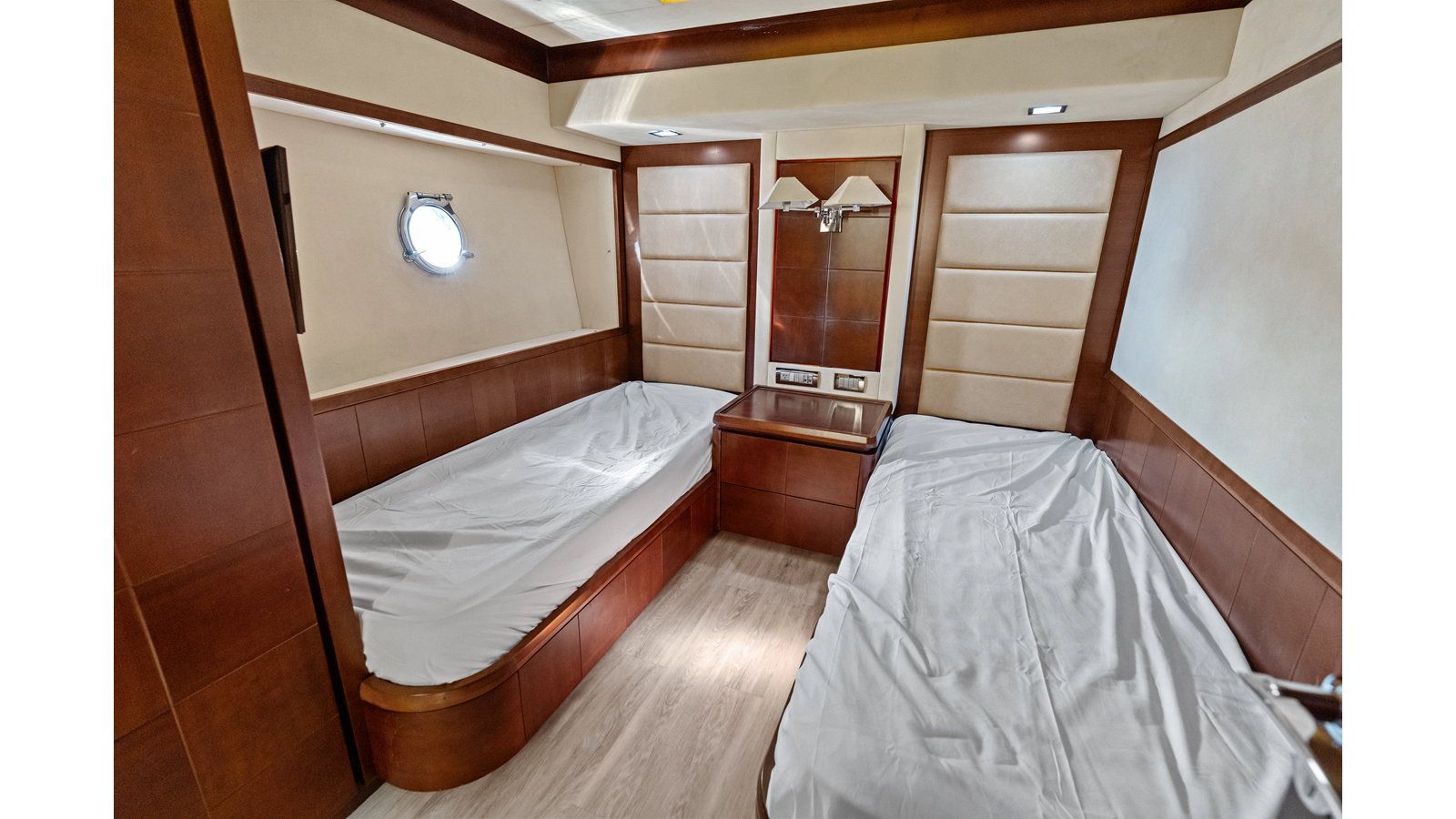 - Two single berths, outboard, with reading light