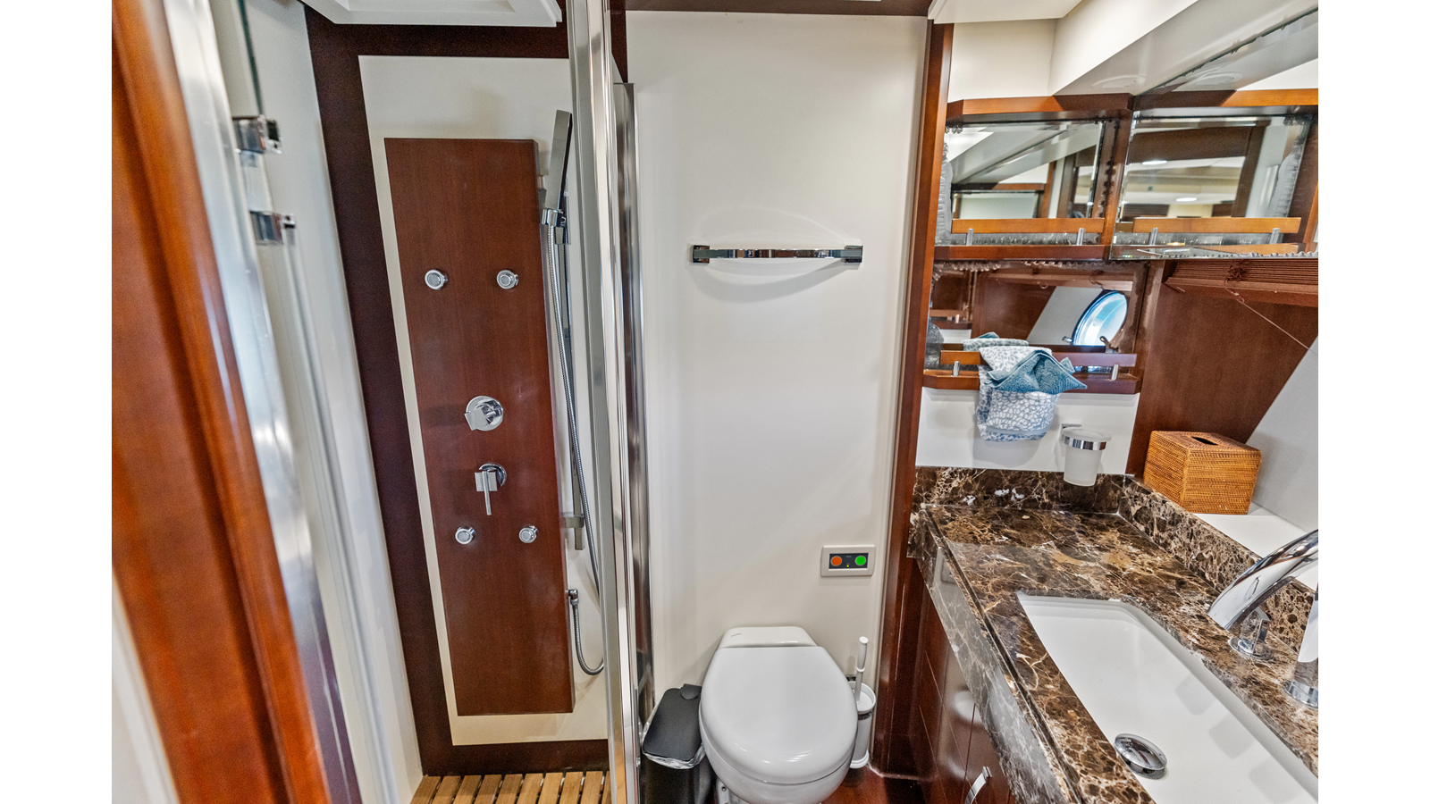 - Mirrored medicine cabinet, outboard, with porthole