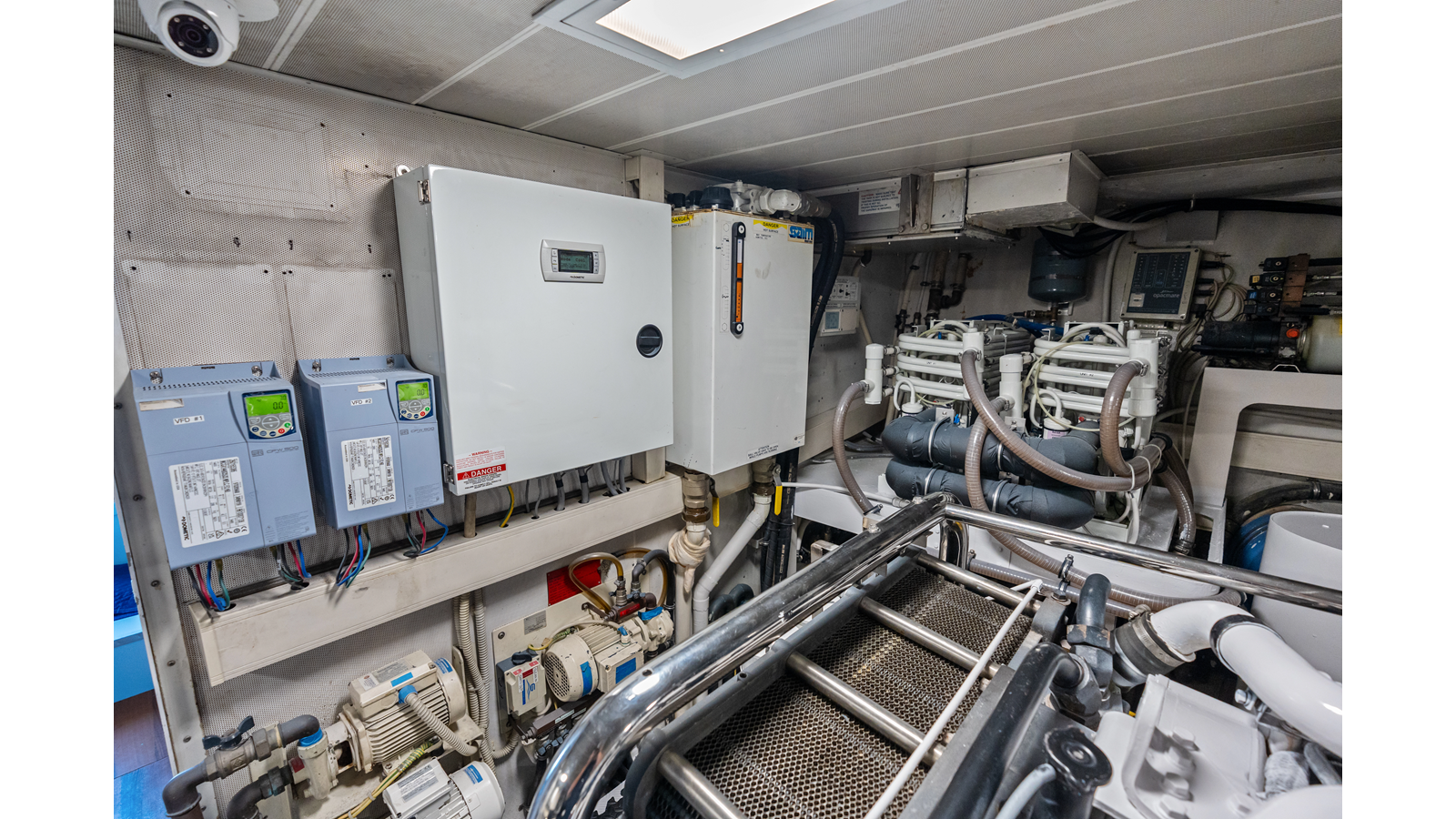 - Two air conditioning chilled water circulation pumps, port aft, rebuilt in 2015