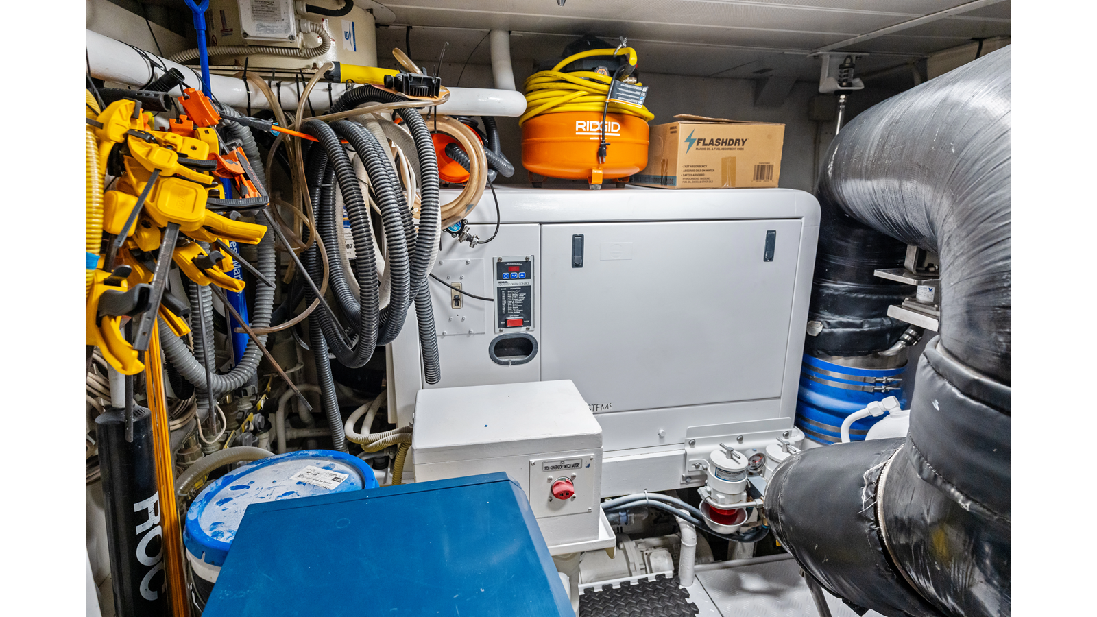 - Two 100-amp Cablemasters, starboard in the locker