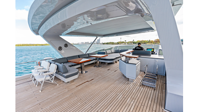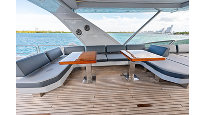 - Outdoor furniture on flybridge, aft deck, and foredeck