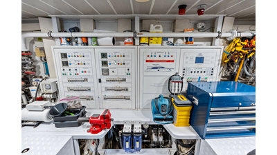 - Two air conditioning raw water cooling pumps, port aft, rebuilt in 2015