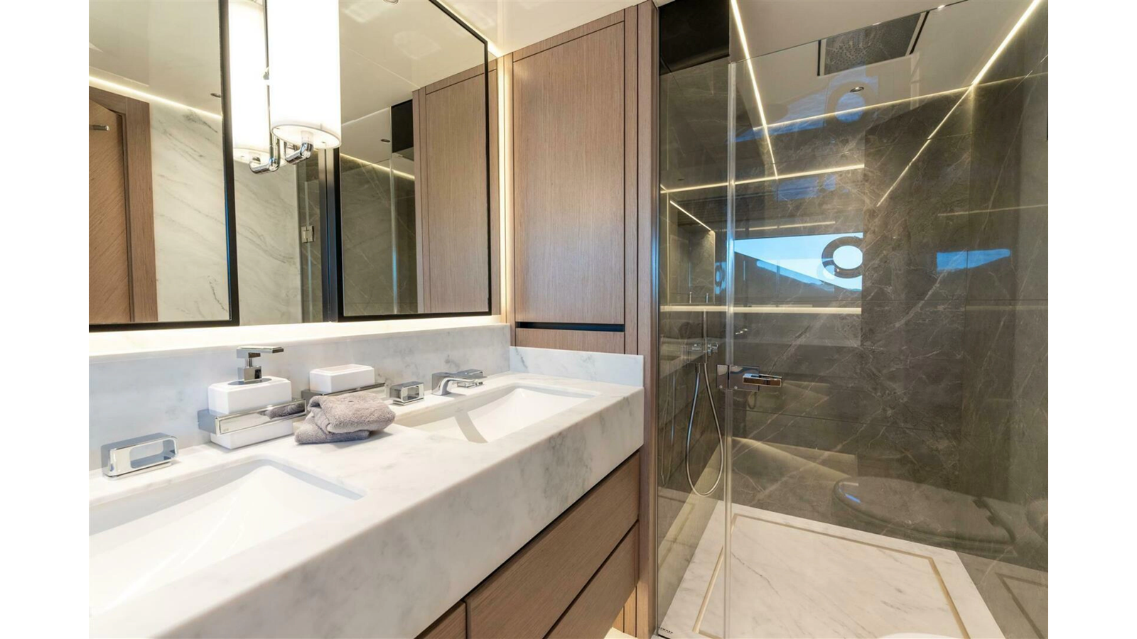 The 90 Ocean Enclosed enhances the Ocean series concept with increased weather protection and versatility. Offering generous living areas, refined accommodations, and strong cruising capability, she is well suited for owners seeking space, comfort, and adaptability across seasons and cruising grounds.