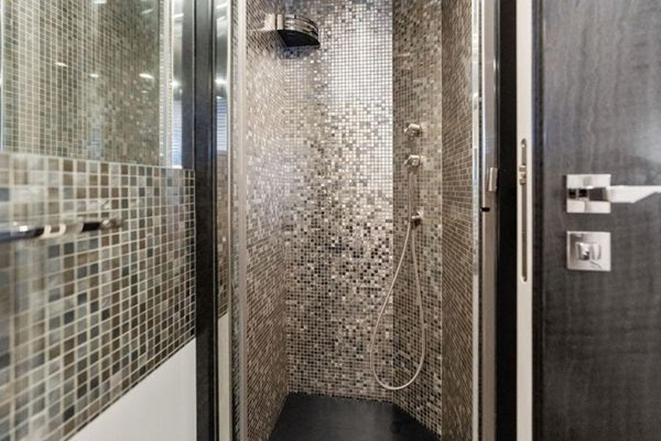 - Walk-in Shower Featuring (Rainshower head & Handheld Shower Head, beautiful Mosaic walls and floor, and Bench Seat)