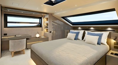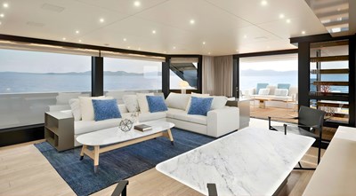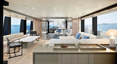 - Patented Sanlorenzo asymmetric design creating a larger, brighter main-deck salon