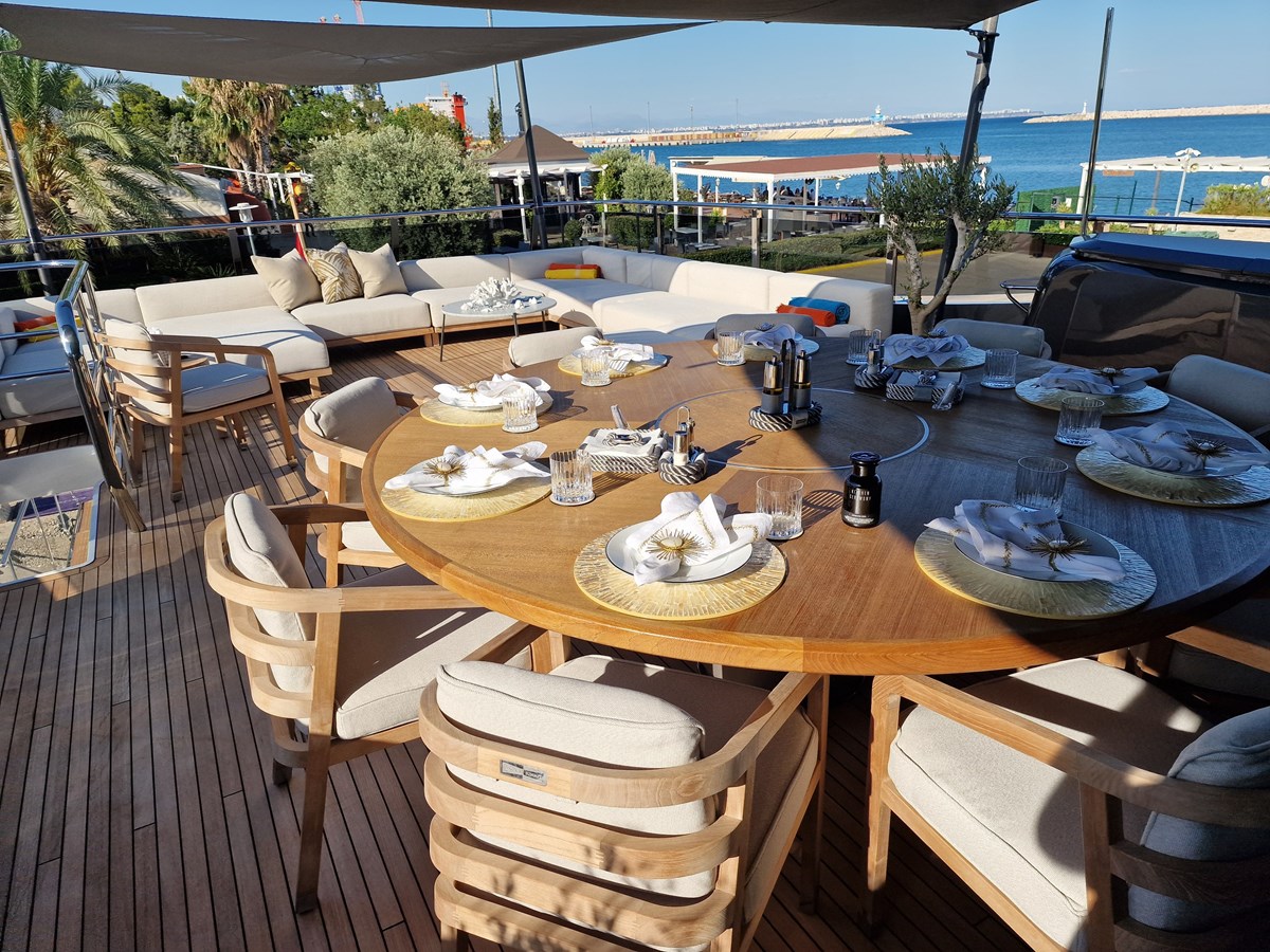 The yacht accommodates up to 10 guests across 5 luxurious staterooms, including a full-beam master suite on the main deck—a rare feature in this size range. All guest areas are bathed in natural light and finished to the highest standards, offering the perfect retreat for long voyages.